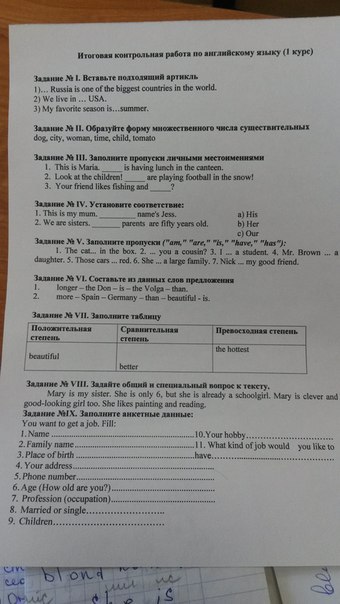 1- 2.- 3.- dogs,cities,women,time,children,tomatoes she they you 1.b 2.c 1.is 2.have 3.am 4.is 5.are 6.has 7.is 1. The Volga is longer than the Don 2.Germany is more beautiful than Spain