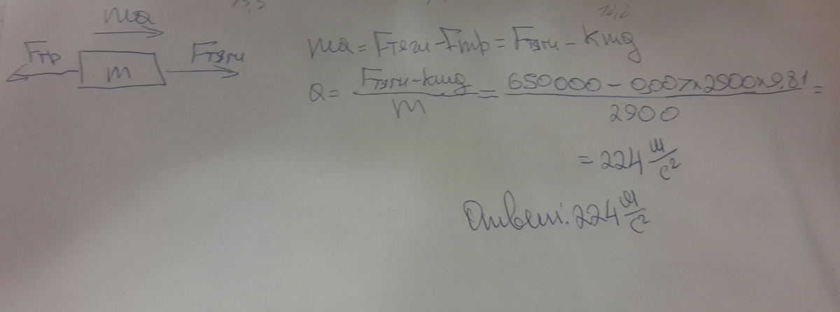 Определите ускорение автомобиля если его масса 2,9 т сила тяги 650 кН а коэффициент трения равен 0,007