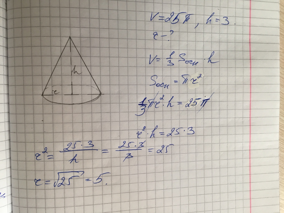 Vконуса = 1/3 Sоснования(оно же Пи R^2) умноженное на h.