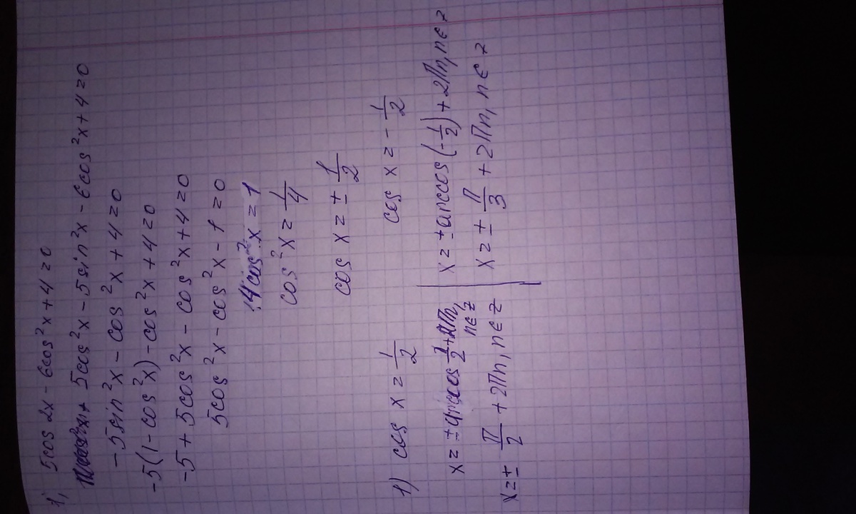 неправильно решения второго ( своб. член не -1, а -10 ) и четвертого. внимание : cosx = 1 - sin²x ???