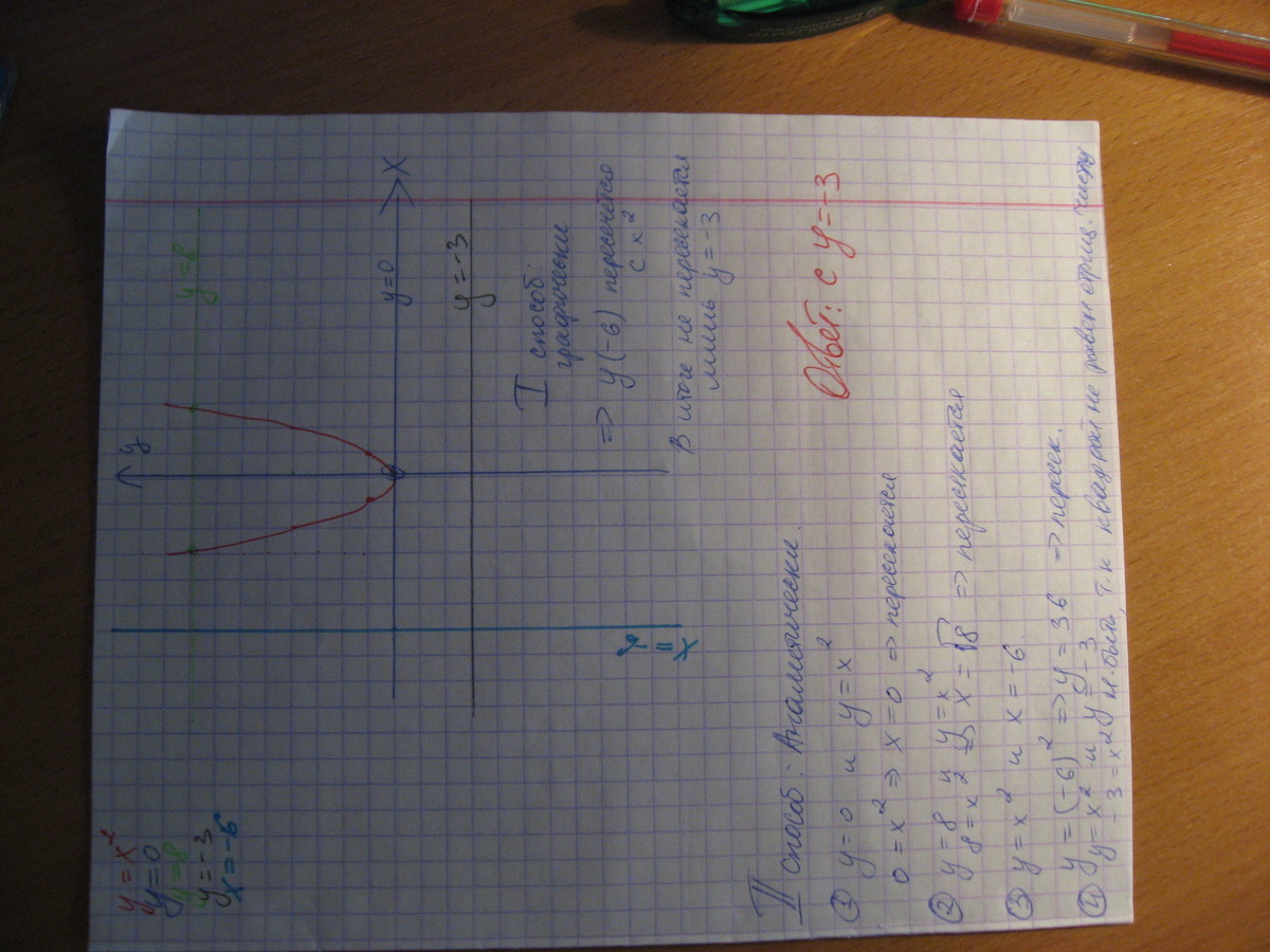 Помогите пожалуйста) Какая из прямых не имеет общих точек с параболой у=х^2? 1)y=0. 2)y=8 3)у=-3. 4)х=-6