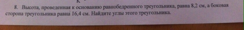 и получается, что высота(=катет) равна половине боковой стороны(=гипотенузы) -- в прямоугольном треугольнике это верно для угла в 30 градусов