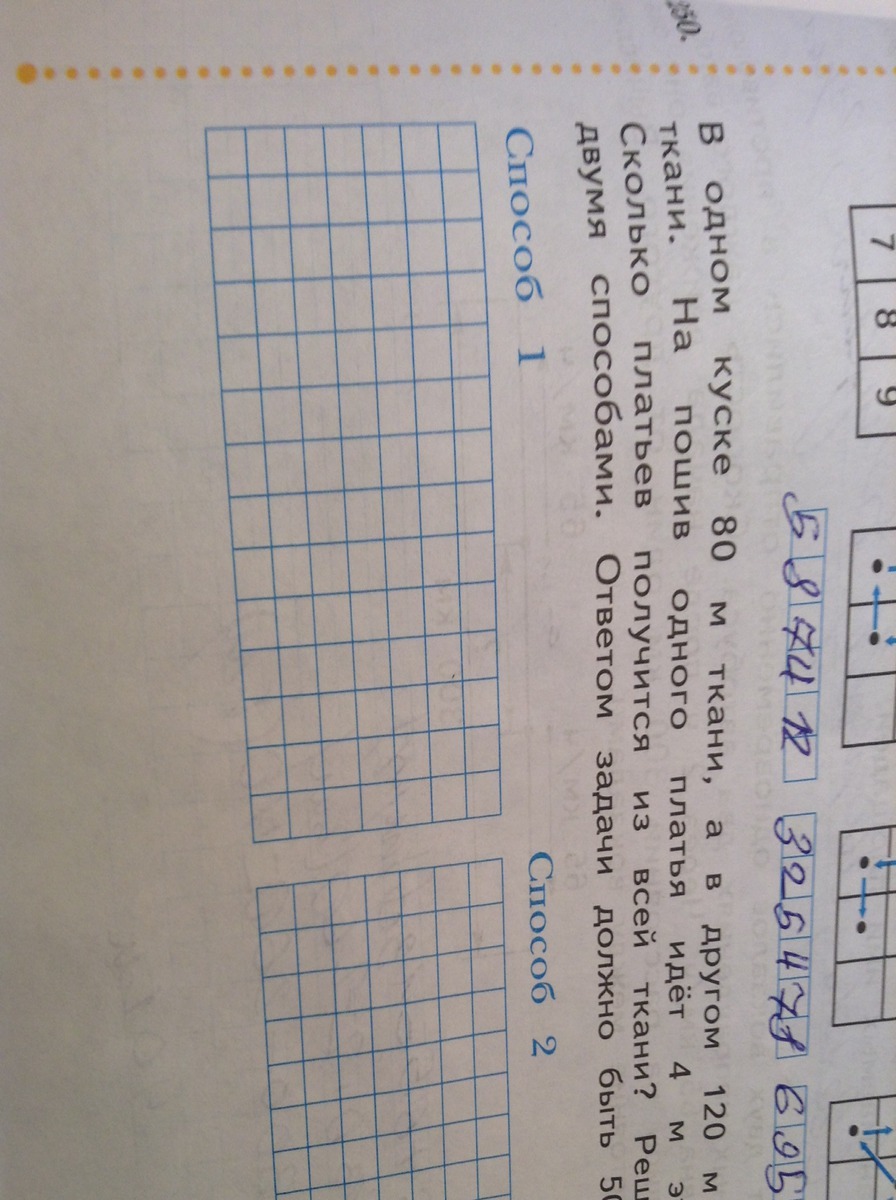 2) 120 : 4 = 30 (платьев) получится из 120м ткани