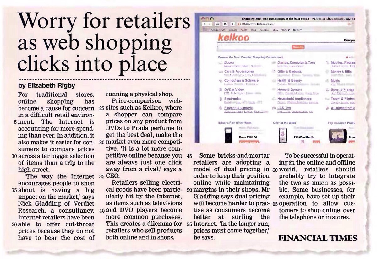 Price-comparison websites, such as Kelkoo, help shoppers to get the best deal.