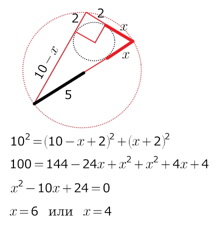 2. отрезки касательных к окружности, проведенные из одной точки, равны (можно один из них обозначить (х))),