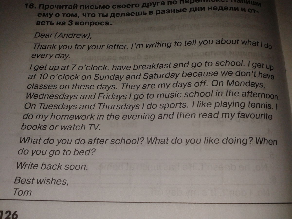 Это нужно перевести, ответить на три вопроса которые он задает и написать ему ответное письмо)