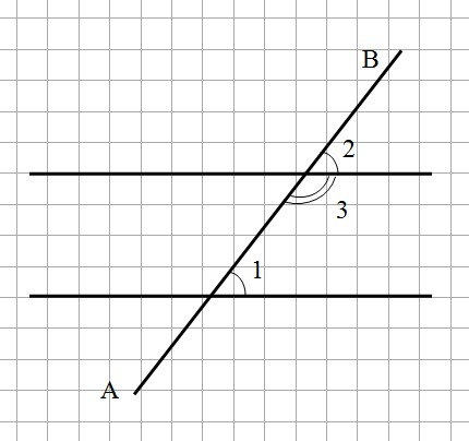 сумма односторонних углов ∠1 + ∠3 = 180°.