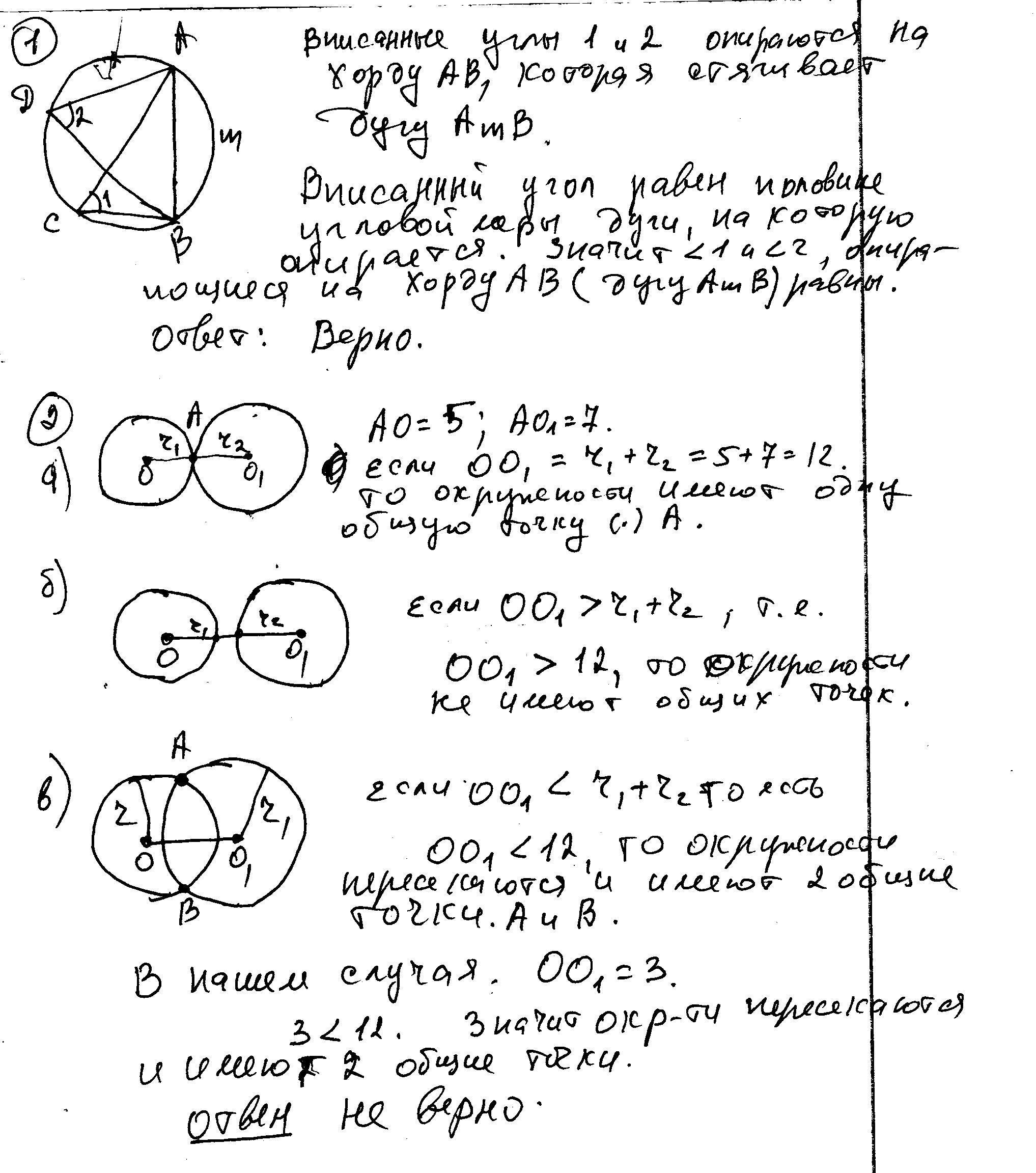 2) Если радиусы двух окружностей равны 5 и 7, а расстояние между их центрами равно 3, то эти окружности не имеют общих точек.