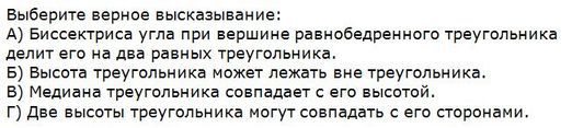 Нет.Или 1)Верно А и Б .......2) Верно В и Г........3)Верно А.....4)Верно АБГ