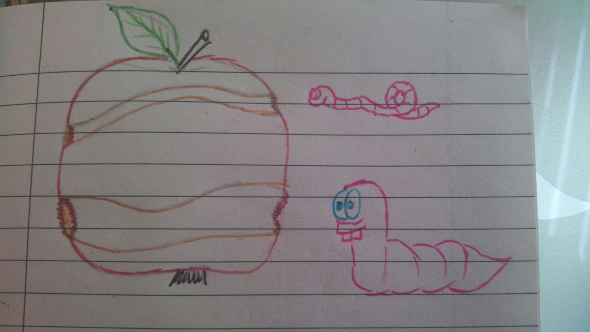 Друзья червячки разной длины. Один длинный, другой короткий .Однажды они нашли вкусное яблоко. Ну его кто то до них поел, причем оставим в ней два разных не пересекающих прохода.Удивительно ну по первому проходу может проползти только короткий червяк. а по второму только длинный короткий не сможет. Нарисовать какие два прохода нашли червячки в яблоке?????