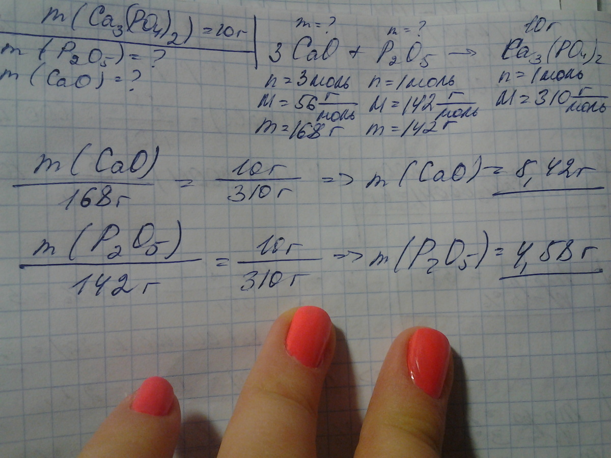 1. Сколько граммов фосфор оксида и кальций оксида нужно отвесить чтобы при их взаимодействии образовалось 10 граммов кальций метафосфат?