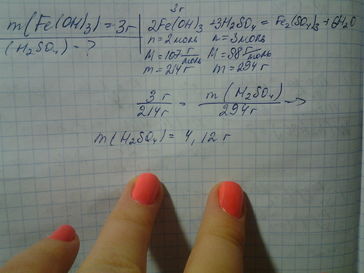 2. Какая масса серной кислоты требуется для растворения 3 грамм Fe (OH) 3?