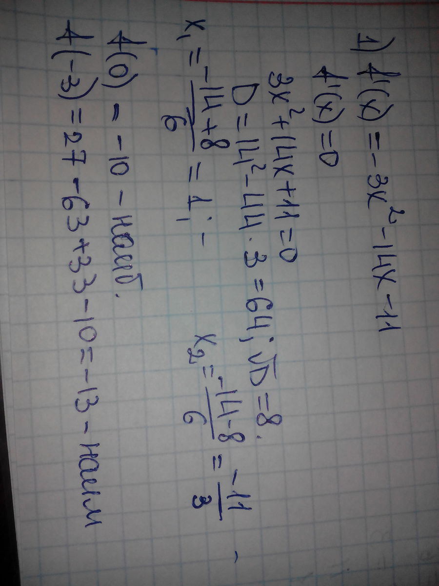 Найдите наибольшее значение функции f(x)=-х^3-7х^2-11х-10 на отрезке [-3;0]