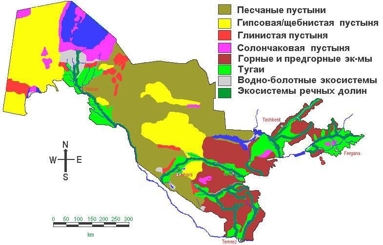 Природные зоны Узбекистана состоят из пустынь и высотной поясности (гор).