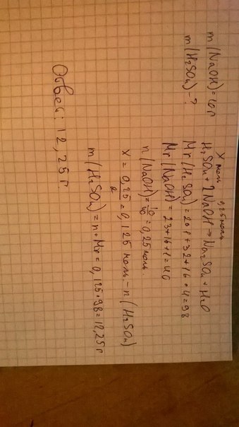 Вычислите массу серной кислоты, которая потребуется, чтобы нейтрализовать раствор, содержащий 10 гидроксида натрия. Распишите подробно, пожалуйста!