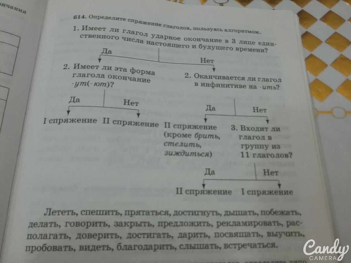 1 спряжение - лететь, прятаться (прятать), достигать, побежать, делать, закрыть (закрывать), рекламировать, располагать, достигать, посвящать, пробовать, встречаться (встречать). 2 спряжение - спешить, дышать, доверить, говорить, предложить, дарить, выучить, видеть, благодарить, слышать