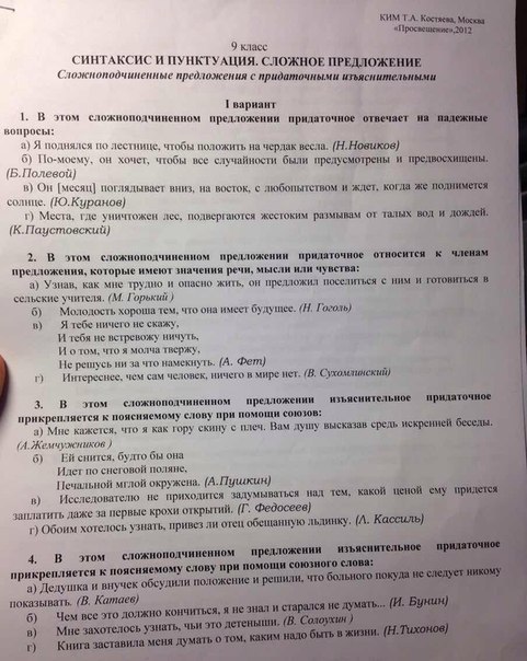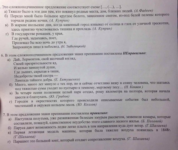 Сложноподч. с прид. объяснит. 1- б, в, 2- в, 3 -а, 4 -в