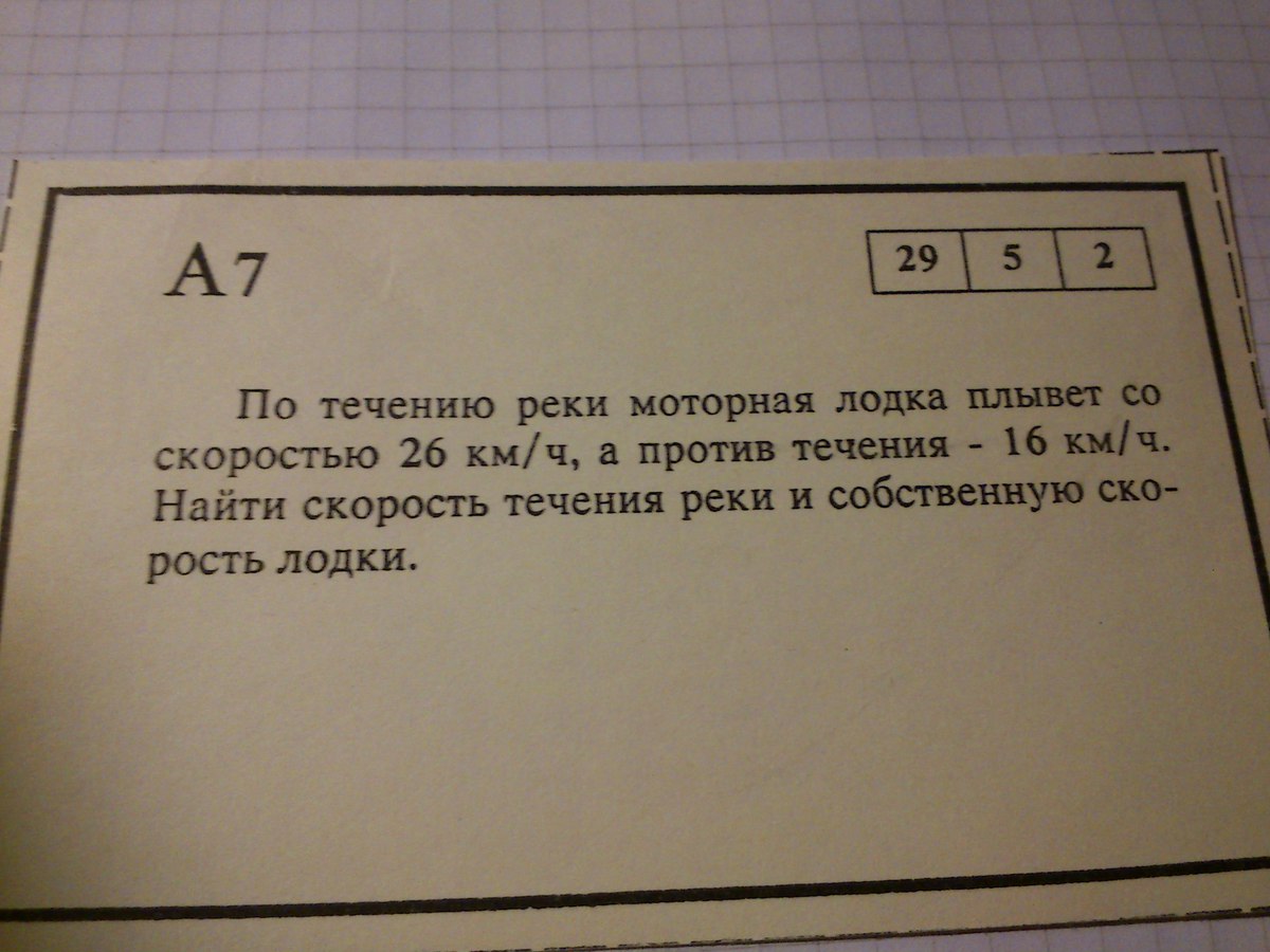 Ответ: скорость течения реки - 5 км/ч, собственная скорость лодки - 21 км/ч.