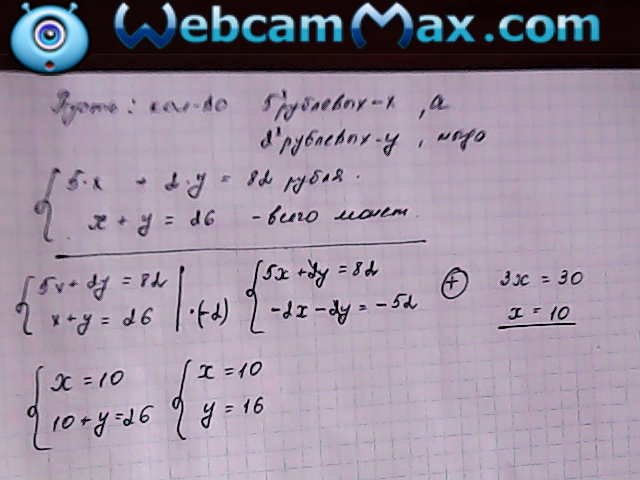 В копилке лежало 82 руб. пятирублевыми и двухрублевыми монетами:всего в ней было 26монет .Сколько пятирублевых монет и сколько двухрублевых монет было в копилке ?