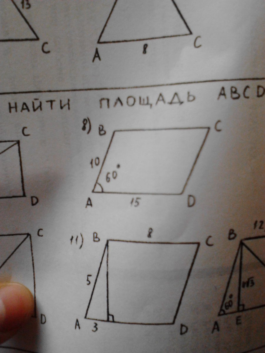 Проведем высоту из вершины В назовём её ВН. В треугольнике АВН угол АВН =30°, т.к. угол А=60, а угол ВНА прямой то есть =90°. По свойству прямоугольного треугольника против угла в 30° лежит катет равный половине гипотенузы следовательно АН= 5 По теореме Пифагора находим ВН и по формуле площади параллелограмма находим площадь