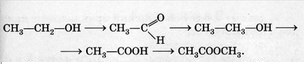 3)СН3-СН2-ОН+О2(под действием ферментов)=СН3-СООН(уксусная кислота)+Н2О