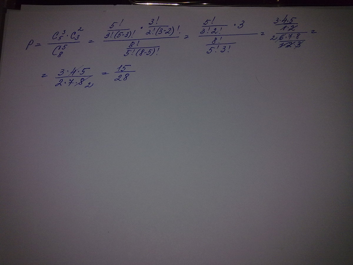 5 ручек. Найдите вероятность того, что среди них будет 3 синие и 2 чёрные.
