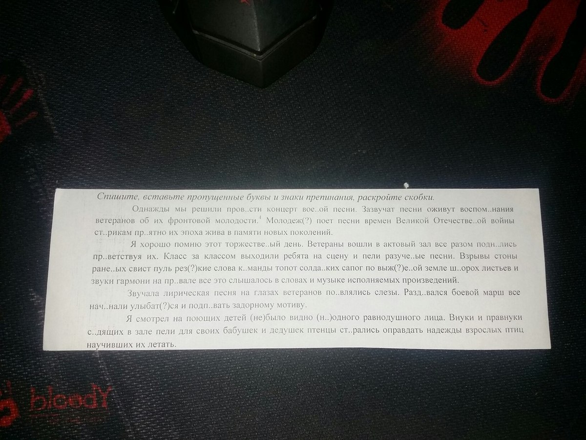 Я хорошо помню этот торжественный день. Ветераны вошли в актовый зал все, разом поднялись, приветствуя их. Класс за классом выходили ребята на сцену и пели разученные песни. Взрывы, стоны раненых, свист пуль, резкие слова, команды, топот солдатских сапог по выжженной земле, шорох листьев и звуки гармони на привале - всё это слышалось в словах и музыке исполняемых произведений.