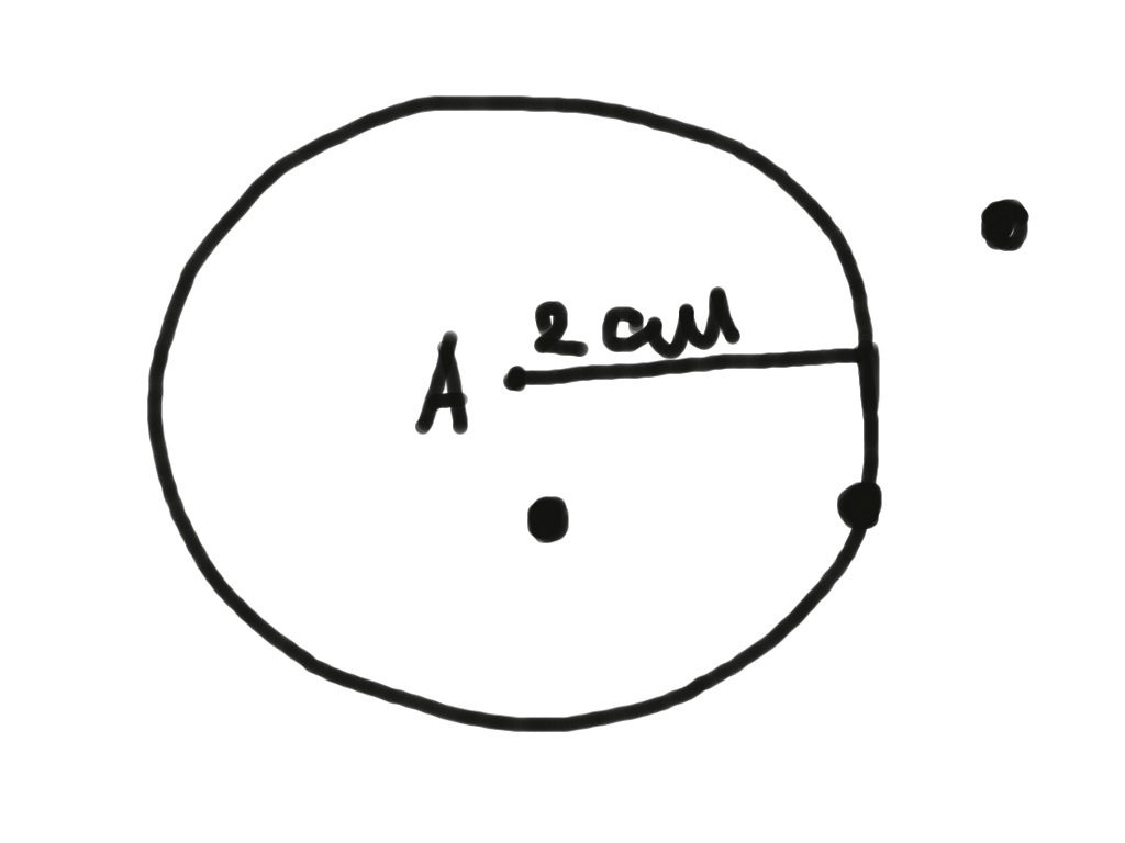 начертите круг с центром A и радиусом 2 см.Отметьте две точки: