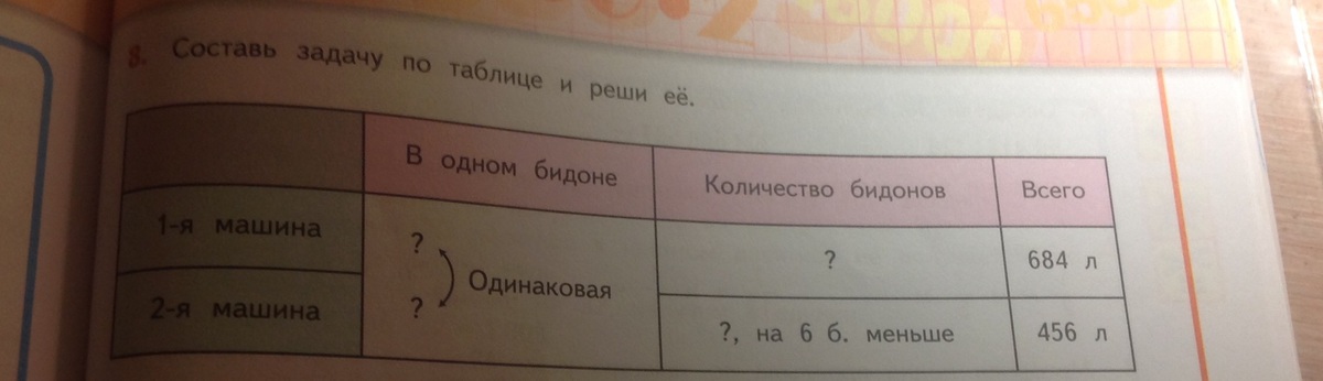 2-я машина | ? | ? На 6 бидонов меньше | 456 литров |