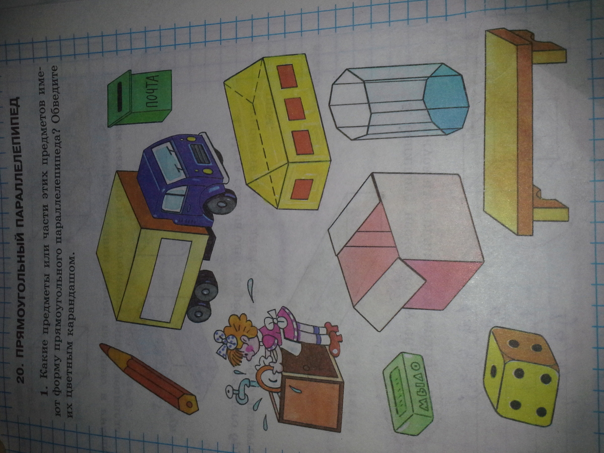 основание дома (без крыши!), мыло, скамейка(если без ножек), у машины, то что взади, выбирайте сами)Извините, если не помогла