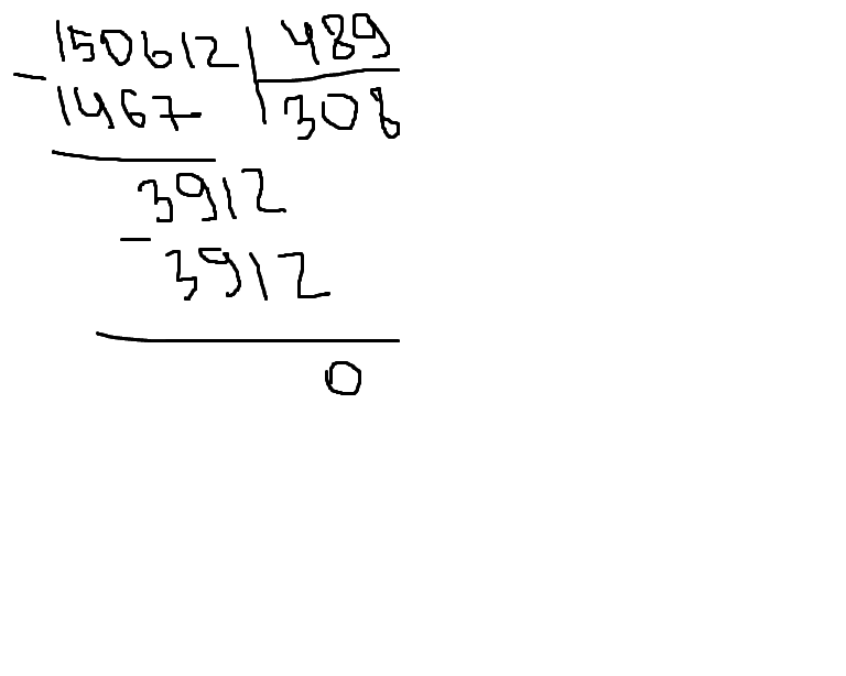 потом берешь по 3, 489*3= 1467 отнимаешь от 150612