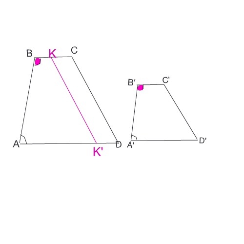 Во вложенном рисунке, где проведена дополнительно сторона KK'=CD, это ясно видно. Хотя по 2 угла равны и боковые стороны трапеций ABKK' и A'B'C'D' пропорциональны, трапеции не подобны, так как основания в них не пропорциональны.