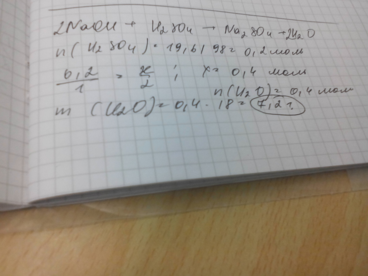 Рассчитайте массу воды, образовавшейся при полной нейтрализации раствора, содержащего 19,6 г серной кислоты , раствором гидроксида натрия