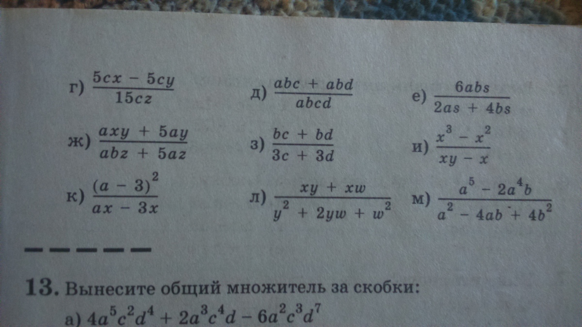 в)c(a-b)/c(x+y)=a-b/x+y