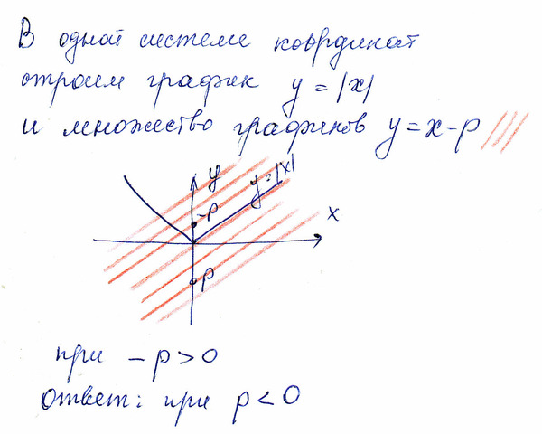 С помощью графиков определите ,при каких значениях р уравнение |x|=x-p имеет динственный корень.