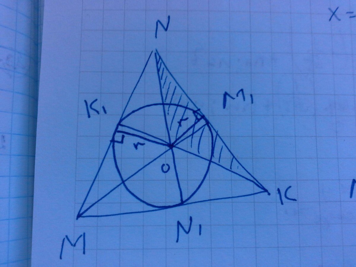Поэтому мы спокойно дорисовываем радиус окружности к треугольнику NOK и находим его площадь.