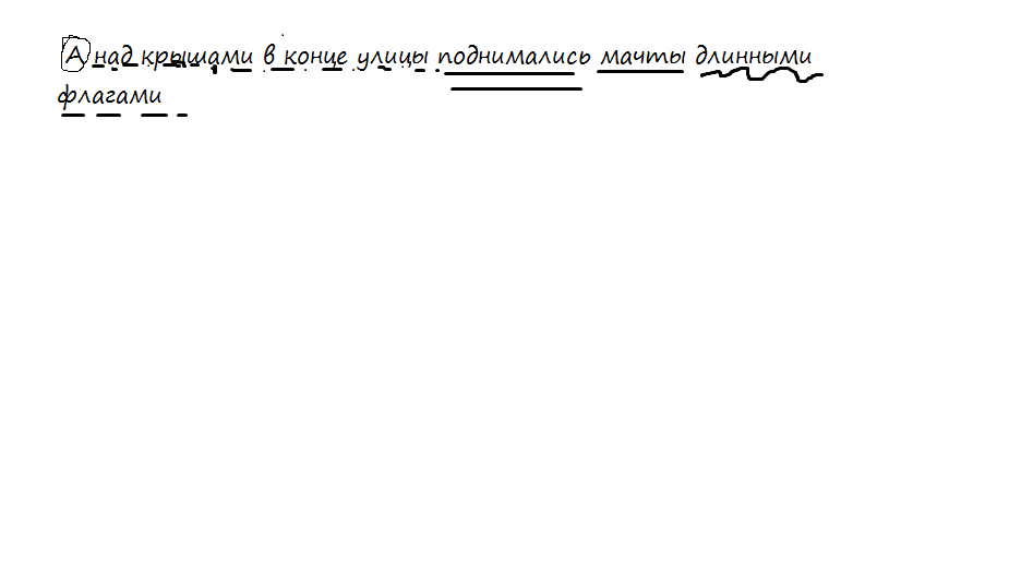 синтаксический разбор предложения А над крышами в конце улицы поднимались мачты длинными флагами