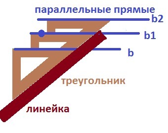 Для построения параллельных прямых достаточно использовать любой угольник и линейка.