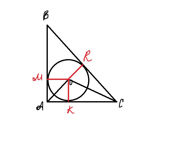 Красным цветов выделены дополнительные построения - радиусы, проведенные в т. касания. ОМ=ОR=OK=R