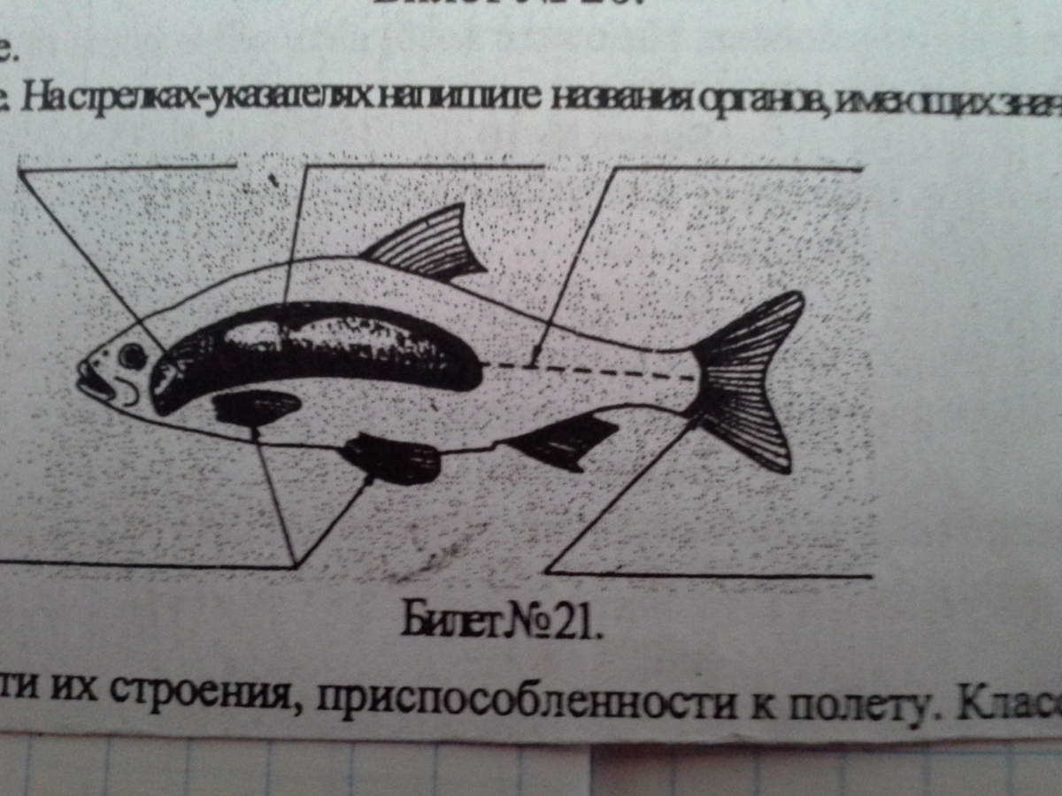 Признаки приспособленности рыб к водной среде. На стрелках-указателях напишите название органов, имеющих значение для жизни рыб в воде.