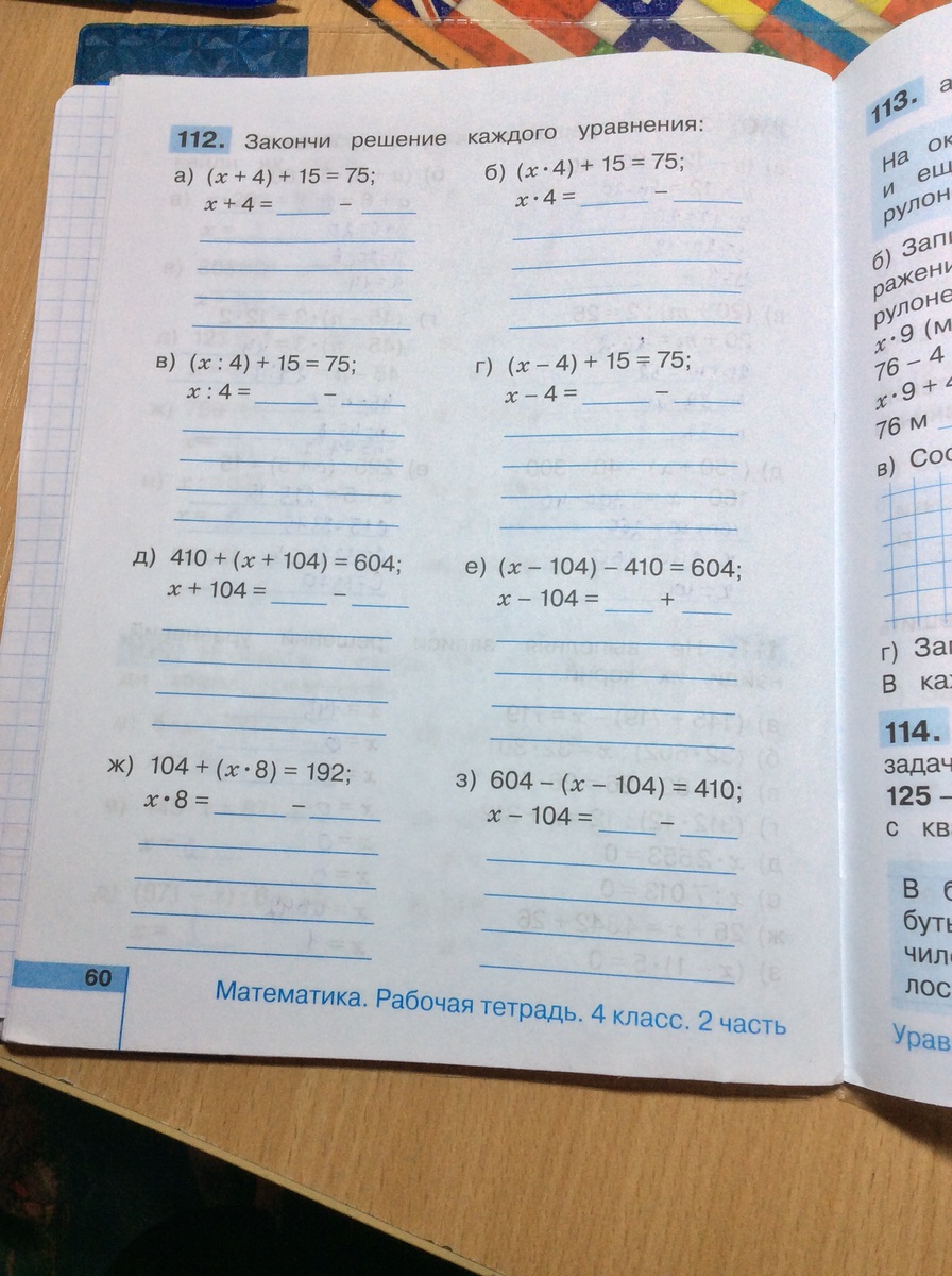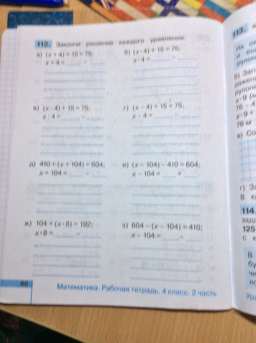 Закончите решение каждого уравнения ( на фото) это одно фото сфотографировано несколько раз)