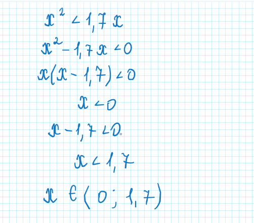 Решите неравенства x^2<1,7x