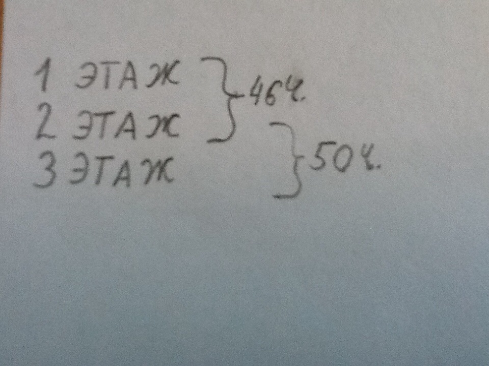 На первом и на втором этажах - 46 человек, на втором и третьем 50 человек.
