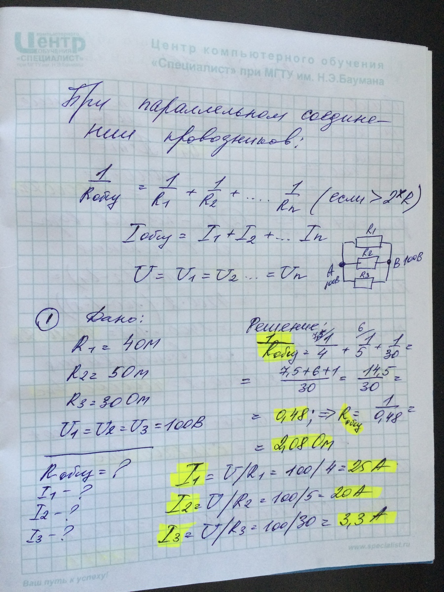 Найдите общее сопротивление проводников соединенных параллельно, если в точках А и В напряжение 100 В. Определите силу тока в сопротивлениях 4 Ом, 5 Ом и 30 Ом и напряжение в этих точках.ХЕЛП МИ СРОЧНО!