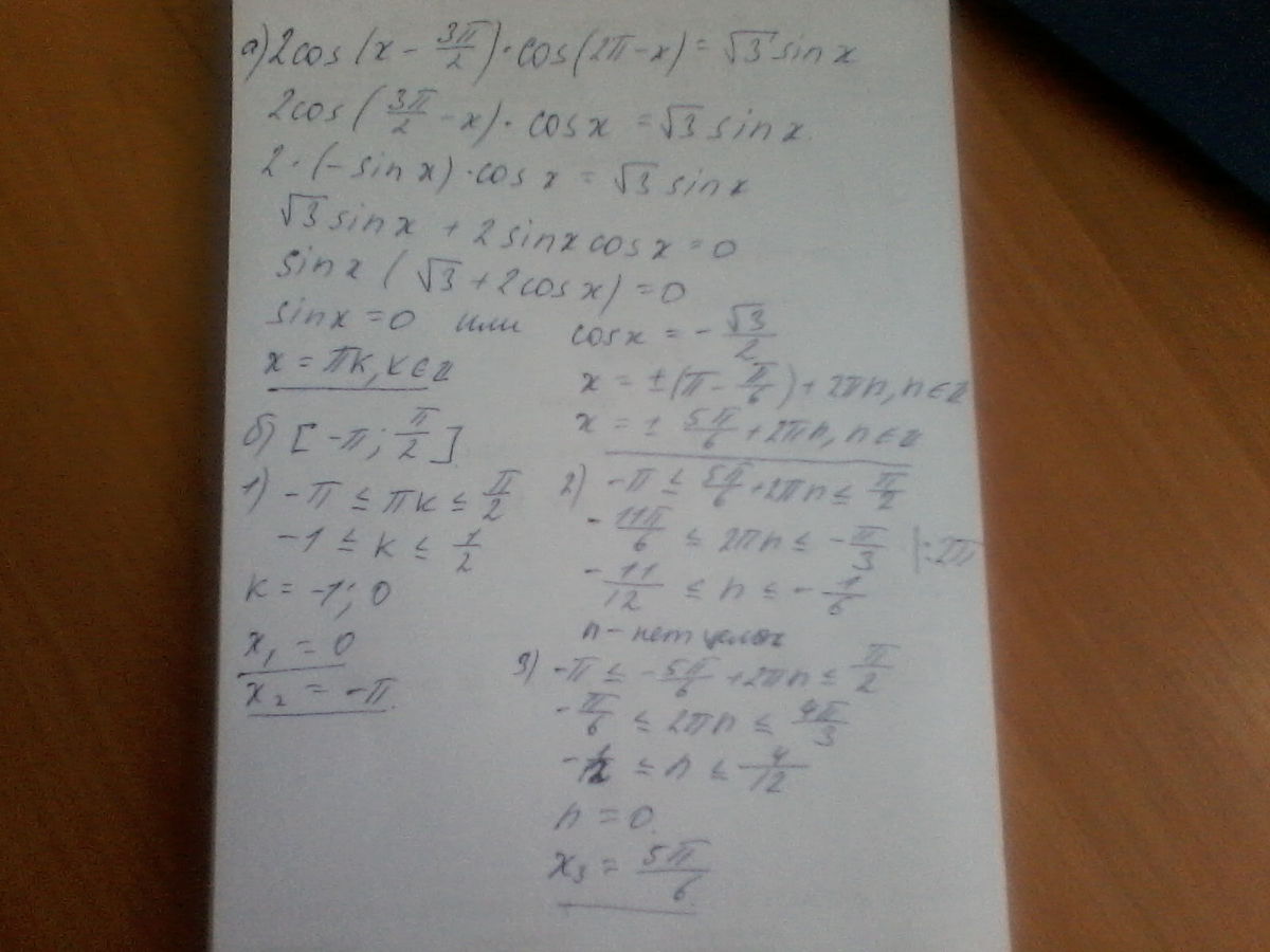 Решите уравнение 2cosx(x-3π/2)*cos(2π-x)=