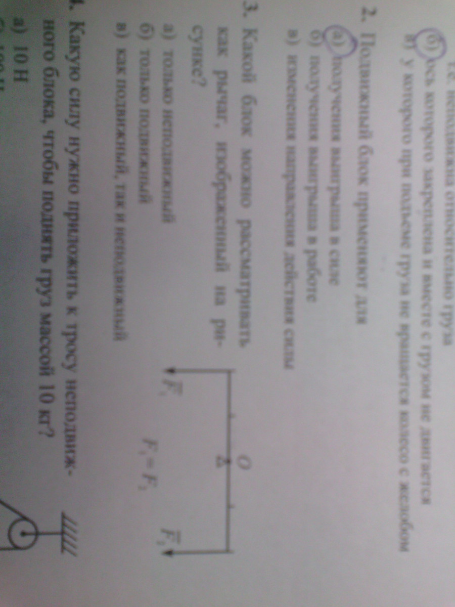 Поскольку сила натяжения троса в обоих ветвях любого блока одинакова, то любой блок, и подвижный и неподвижный, можно рассматривать как рычаг, изображенный на рисунке. Конечно при непременном условии, что ветви троса параллельны.
