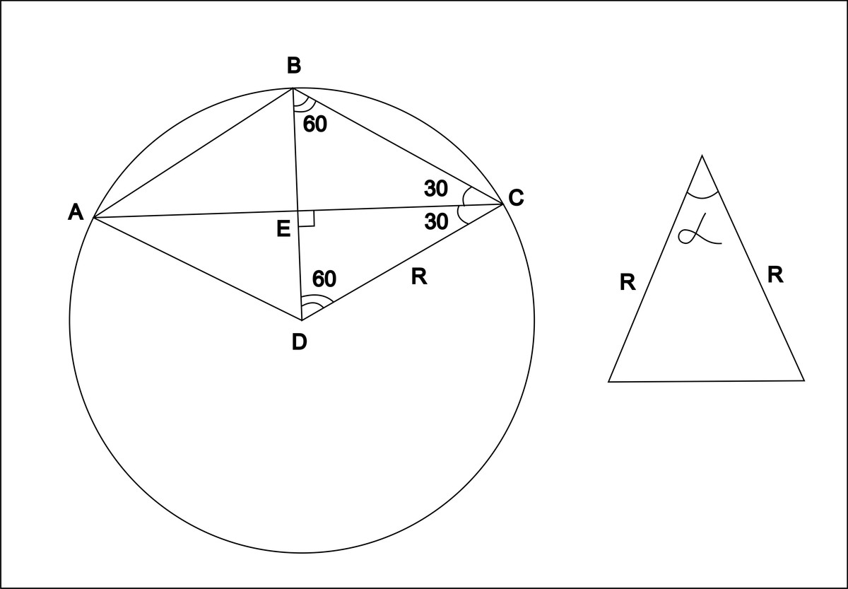 EC²=BC²-EB²=R²-(R²/4)=(3R²)/4
