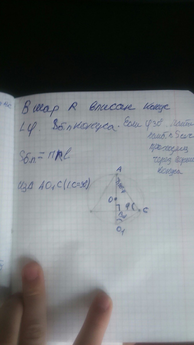 В шар радиус р вписан конус...... Найти площадь...... если угол а 30. Найти наибольшую площадь сечения проходящую через вершину конуса