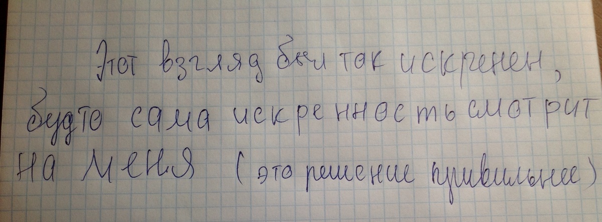 она посмотрела на меня и этот взгляд был так искренен, будто сама искренность смотрит на меня