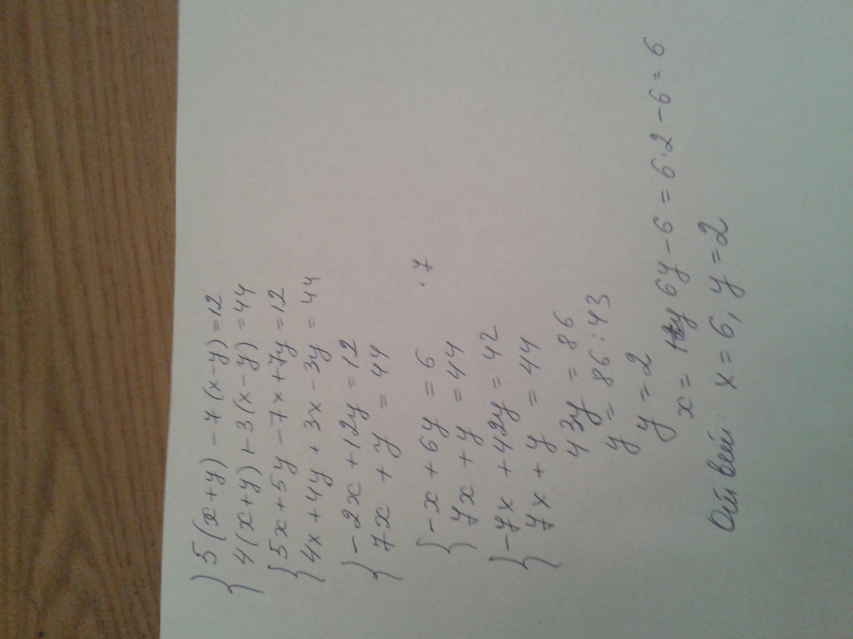 5(x+y)-7(x-y)=12 пусть x+y=m